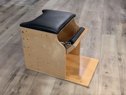 The Wunda Chair (or Pilates Chair) is one of the smallest pieces of equipment in the studio, and one of the most powerful. It’s a seat-like apparatus with a spring-loaded